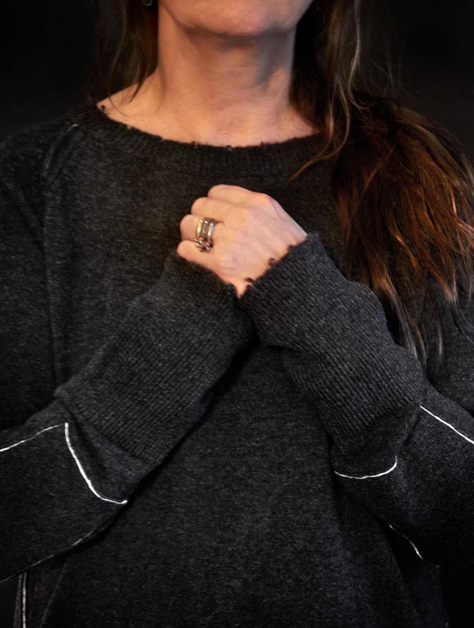 Herlig avslappet hverdagsluksus i 100 % cashmere fra italienske Loro Piana. Bruk genseren til favorittjeansene for en tilbakelent hverdagslook. Rund hals med splitt i sidesøm og rib i siden.